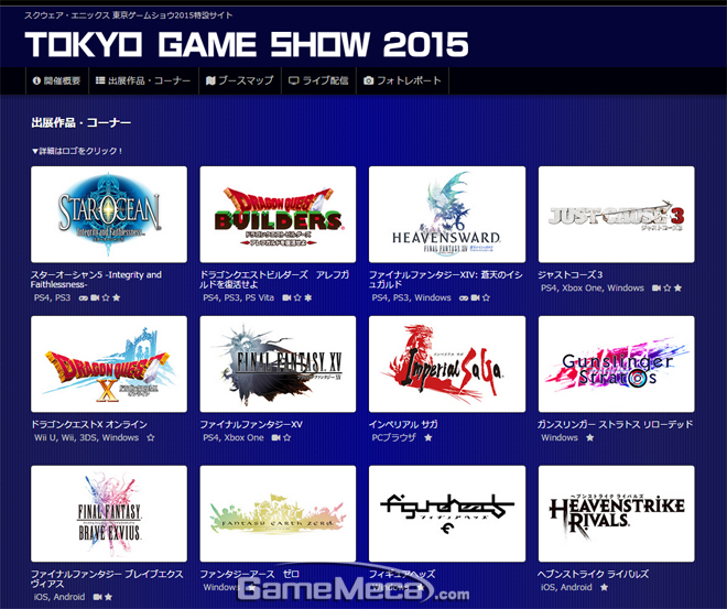 ▲ 스퀘어 에닉스 TGS 2015 출품작 목록 (자료출처: 스퀘어 에닉스 TGS 2015 공식 페이지)