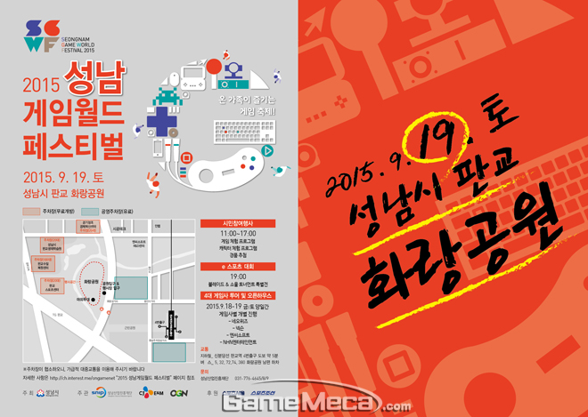 성남시는 9월 18일부터 19일까지 이틀 동안 성남시 판교 화랑공원에서 '2015 성남게임월드페스티벌'을 연다. 게임산업 축제가 드디어 첫 선을 보인다. 이번 행사는 성남산업진흥재단, CJ E&M이 공동 주관하고 스포츠조선, 스포츠서울, 성남FC가 후원한다.