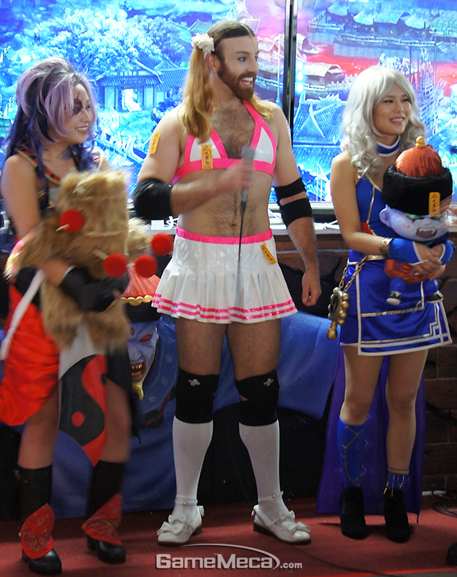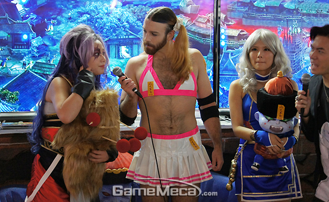 ▲ TGS 2015서 부스모델로 활약 중인 아이돌 ‘레이디비어드’: 세계 3대 게임쇼 TGS 2015가 오늘부터 나흘간 진행됩니다. 게임을 사랑하는 사람이라면 누구나 환영! 설레는 신작 소식과 볼거리로 꽉 찬 부스들을 모두에게 열려있습니다. 그래서일까요? 한 켠에선 거칠게 돋아난 턱수염과 부릅뜬 눈매가 인상적인 아이돌 ‘레이디비어드’가 한창 들뜬 모습입니다. 빽빽한 가슴털을 겨우 가린 의상이 무섭기보단 귀엽네요. 역시 모두의 게임쇼 TGS에 불가능이란 없습니다.