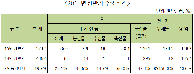 ▲ 제주특별자치도 2015년 상반기 수출 실적표 (자료제공: 제주특별자치도)