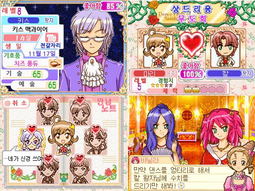 무도회에 나가기 위해서는 반드시 남성 댄스 파트너가 필요하다. 주인공은 외모와 성격이 제각각인 왕자님들 중 마음에 드는 왕자님을 댄스 파트너로 정해 무도회에 나가야 하며, 파트너와의 즐거운 시간 또한 보낼 수 있다. 본격 댄스 어드벤처라는 장르에 걸맞게 ‘이상한 나라의 프린세스’에는 다양한 댄스가 준비되어 있으며, 터치스크린에 표시되는 댄스 라인을 터치펜으로 슬라이드하는 것 만으로도 멋진 댄스를 펼칠 수 있다.