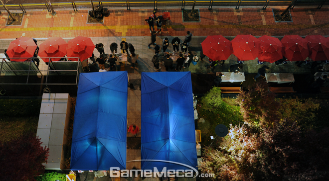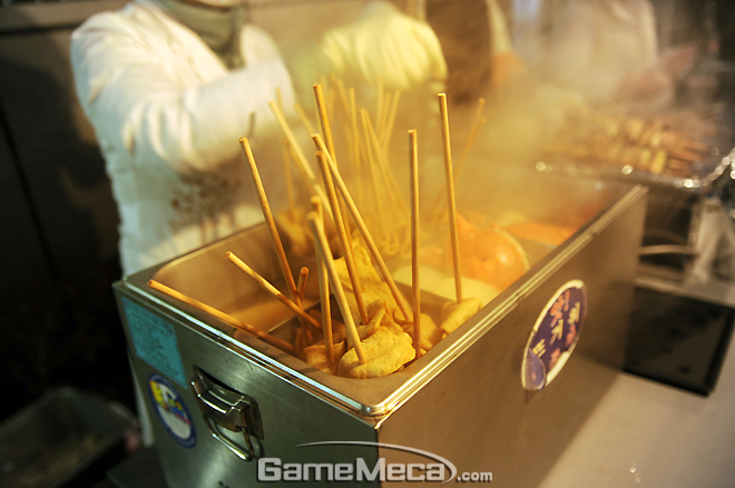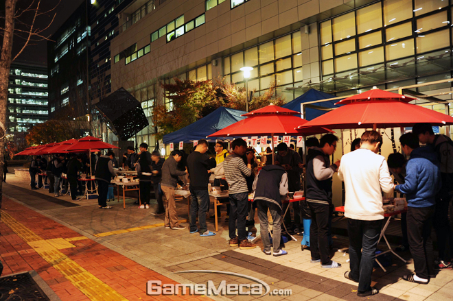 ▲ 깊어가는 겨울밤 개발사 앞 포장마차 - 주말부터 이번 주 초까지 추적추적 가을비가 내리며 날씨가 부쩍 쌀쌀해졌습니다. 추운 날 옷깃을 여미고 퇴근길에 오르면 얼어붙은 몸을 녹일 따끈한 어묵이 생각나기 마련입니다. 특히 야근이 잦은 게임 개발자라면 몸을 녹일 야식이 간절해지죠. 이 와중 '서든어택'으로 유명한 넥슨지티 앞에 열린 의문의 포장마차가 눈길을 끕니다. 말랑말랑한 어묵에, 달달한 닭꼬치, 매콤한 떡볶이까지. 야식 3인방이 총출동했네요. 이번 포장마차는 넥슨지티가 작년부터 사내 직원을 위해 문을 연 포장마차인데요, 포장마차를 차려 추워지는 날씨, 업무에 지친 개발자를 즐겁게 할 사내 이벤트로 마련했다고 하더군요.