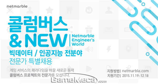 넷마블게임즈(이하 넷마블)는 12월 18일까지 개인 맞춤형 게임 서비스 엔진 ‘콜럼버스’ 프로젝트에 함께 할 빅데이터·인공지능 전문가를 공개 채용하며 본격적인 시동을 걸었다.