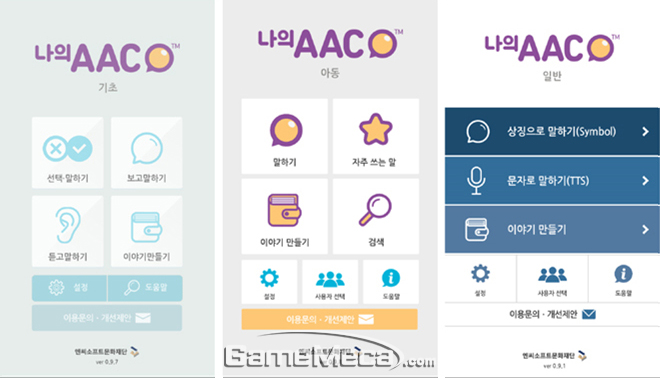 엔씨소프트문화재단은 ‘나의 AAC’를 구글과 애플 앱스토어, 양대 마켓에서 모두 무료로 선보일 예정이다. 구글플레이에서는 24일부터 곧바로 내려 받을 수 있으며, 애플 앱스토어에서도 11월 중 만나볼 수 있다. ‘나의 AAC’는 사용자의 장애 정도에 따라 취사 선택할 수 있도록 기초, 아동, 일반 3가지 버전으로 제공된다. 중증 장애인을 위한 기초는 취식이나 용변처럼 가장 기본적인 의사 표현이 포함되어 있으며, 아동과 일반은 각각 300, 950개 ‘상징’이 담겨 있어 좀 더 복잡한 소통이 가능하다.