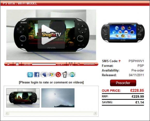 PS 비타와 전용타이틀의 예약 판매를 시작한 영국의 게임 판매 사이트 `Shop
