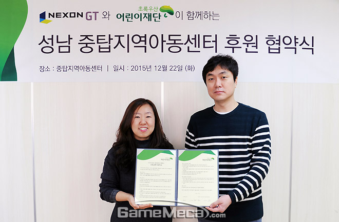 넥슨지티는 22일 성남시 분당구 야탑동 초록우산어린이재단 중탑지역아동센터와 사회공헌 협약을 맺고 후원금 1,000만 원과 PC 5대를 전달했다.
