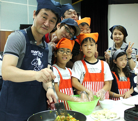 ▲ 넷마블 조영기 부문대표가 아이들과 함께 요리경연에 참가하여 음식을 만드는 모습