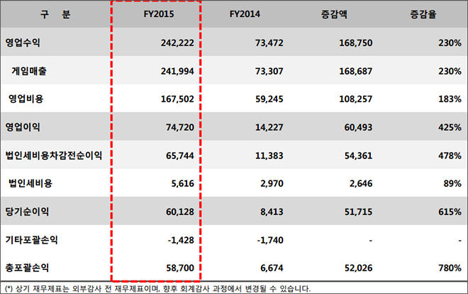 ▲ 웹젠 2015년 연간 연결 실적 (자료제공: 웹젠, 단위: 백만 원)