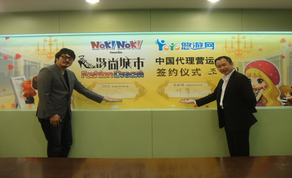 `패션시티` 의 중국 퍼블리싱 계약을 체결한 `노크노크` (좌: 박시진 대표)