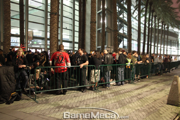미국 애너하임 컨벤션 센터에서 진행되는 블리자드의 최대 게임쇼, 블리즈컨 2011. 행사장 입구는 블리즈컨을 즐기기 위해 새벽부터 줄 서서 기다리는 많은 관람객으로 북적이고 있었다. 현지시간 5시 30분, 입장까지 장장 4시간을 기다려야 하지만 피곤한 기색 없이 기대감에 흥분되 보였다. 게임메카는 뜨거웠던 이날 현장의 모습을 카메라에 담았다.